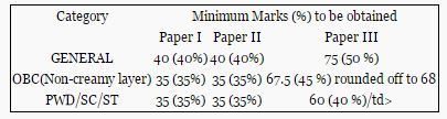 Minimum marks to be obtained in NET for considering a candidate for the award of JRF and eligibility for lectureship: The candidates are required to obtain following minimum marks separately in Paper-I, Paper-II and Paper-III as given below: